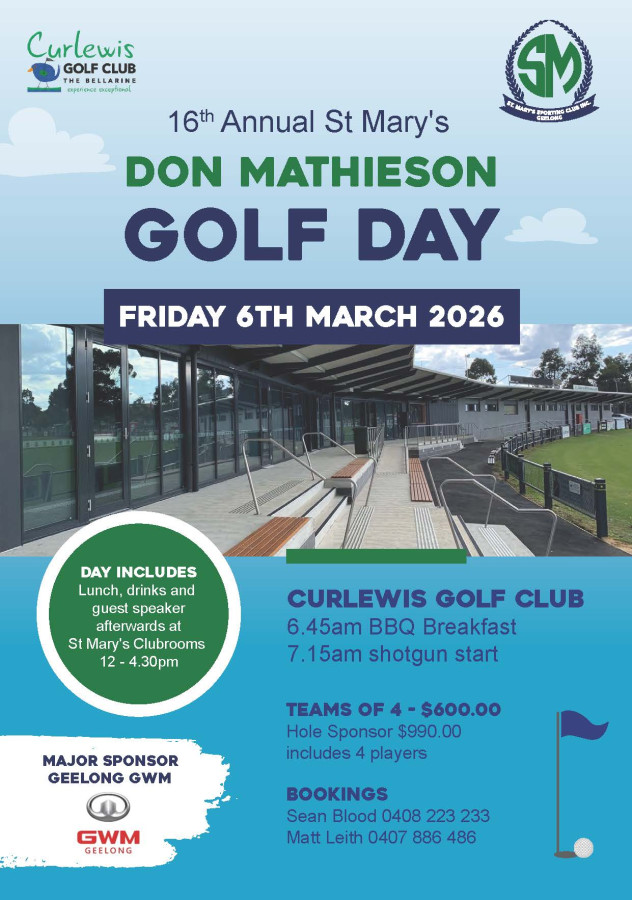 St Mary’s Sporting Club is proud to launch the 16th Annual Don Mathieson Golf Day, set for Friday 6 March 2026 at the beautiful Curlewis Golf Club.